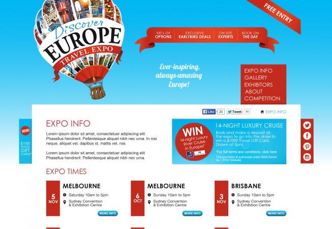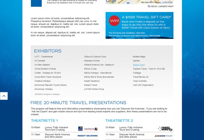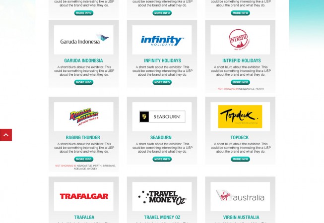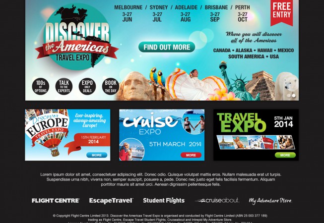 This project involved designing and building a system using Drupal that would facilitate responsive websites for the 4 travel expos run by Flight Centre Travel Group.