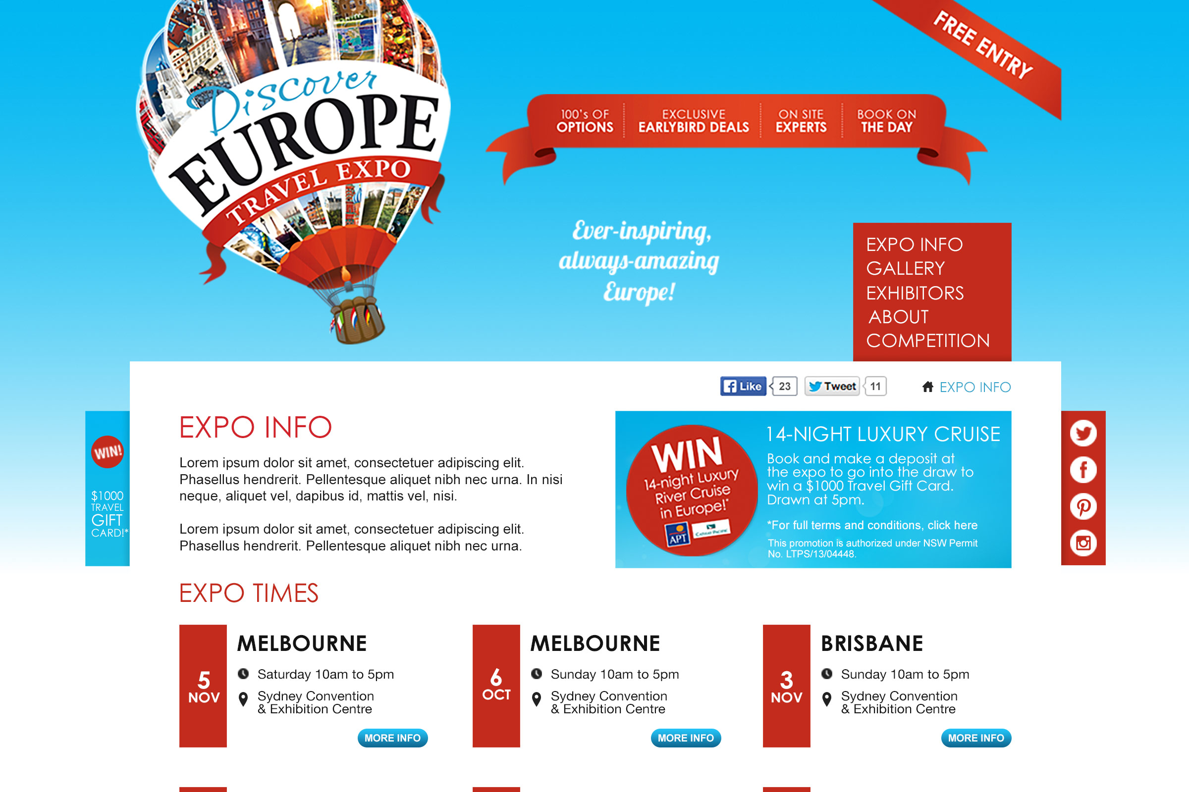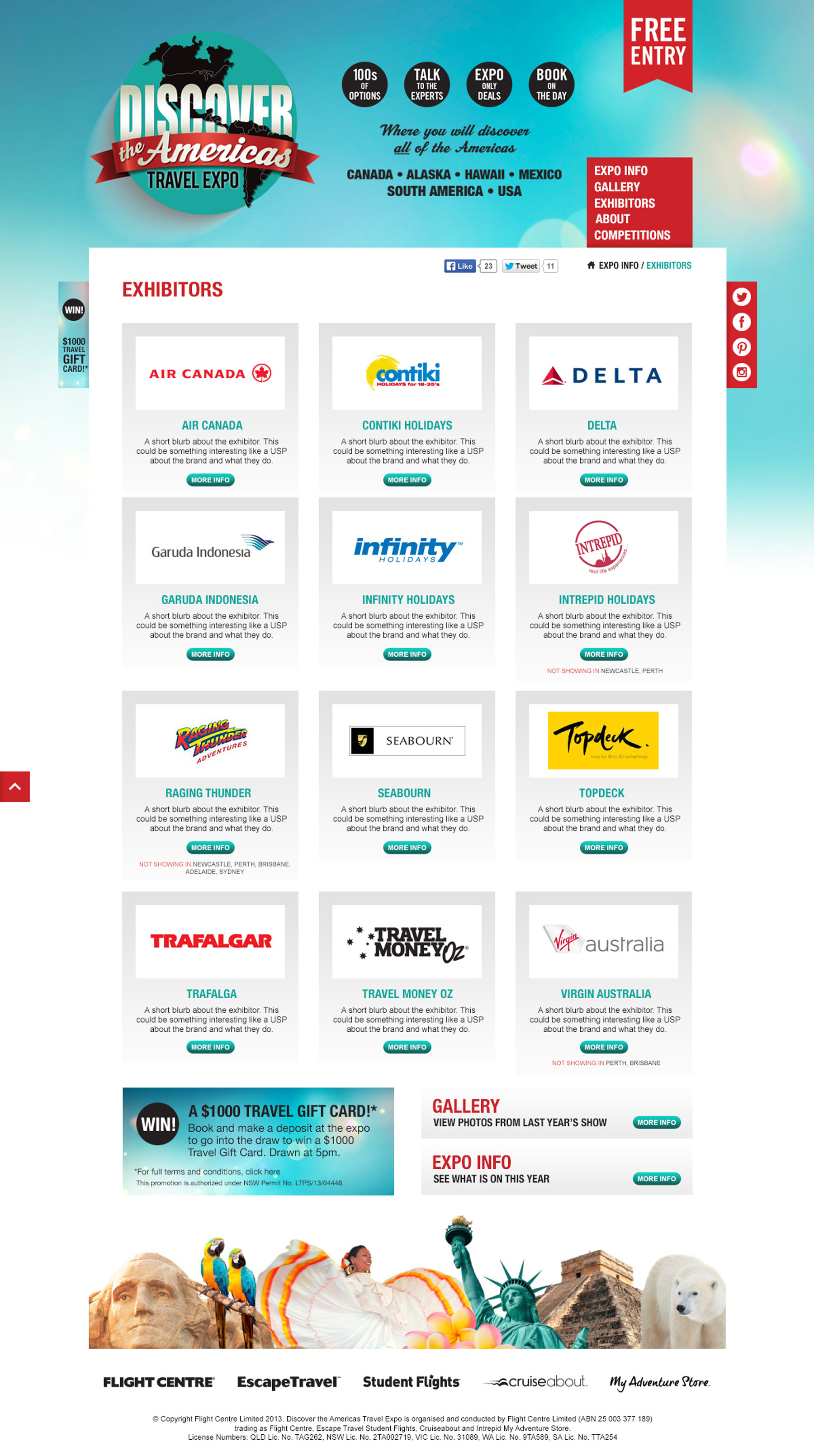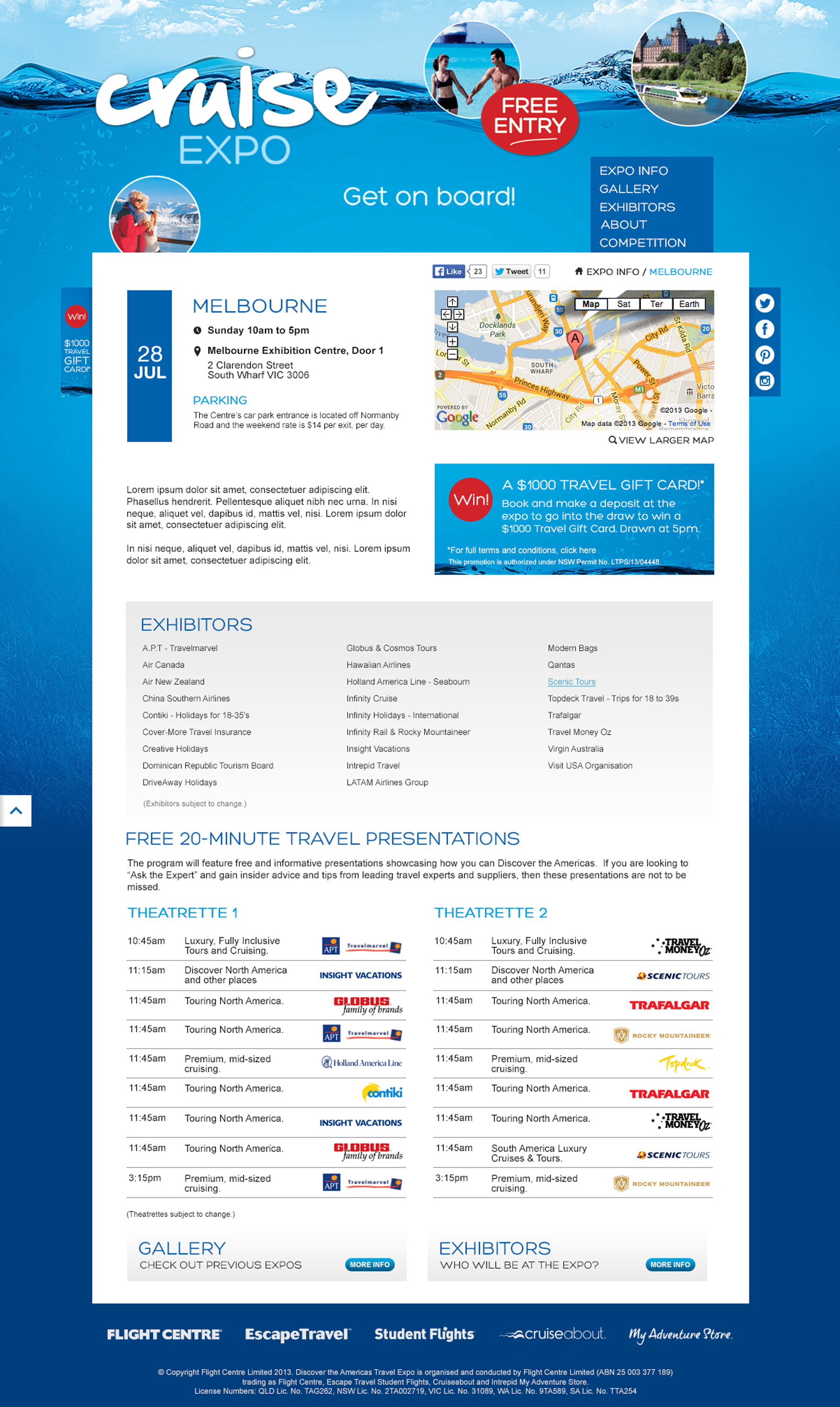 This project involved designing and building a system using Drupal that would facilitate responsive websites for the 4 travel expos run by Flight Centre Travel Group.